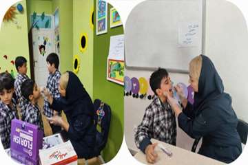 آموزشهای عملی مراقبین سلامت پایگاه های سرسبز و عادل به دانشآموزان دبستان پسرانه فرهیختگان و روشنگرن در قالب پویش ملی سلامت دهان و دندان